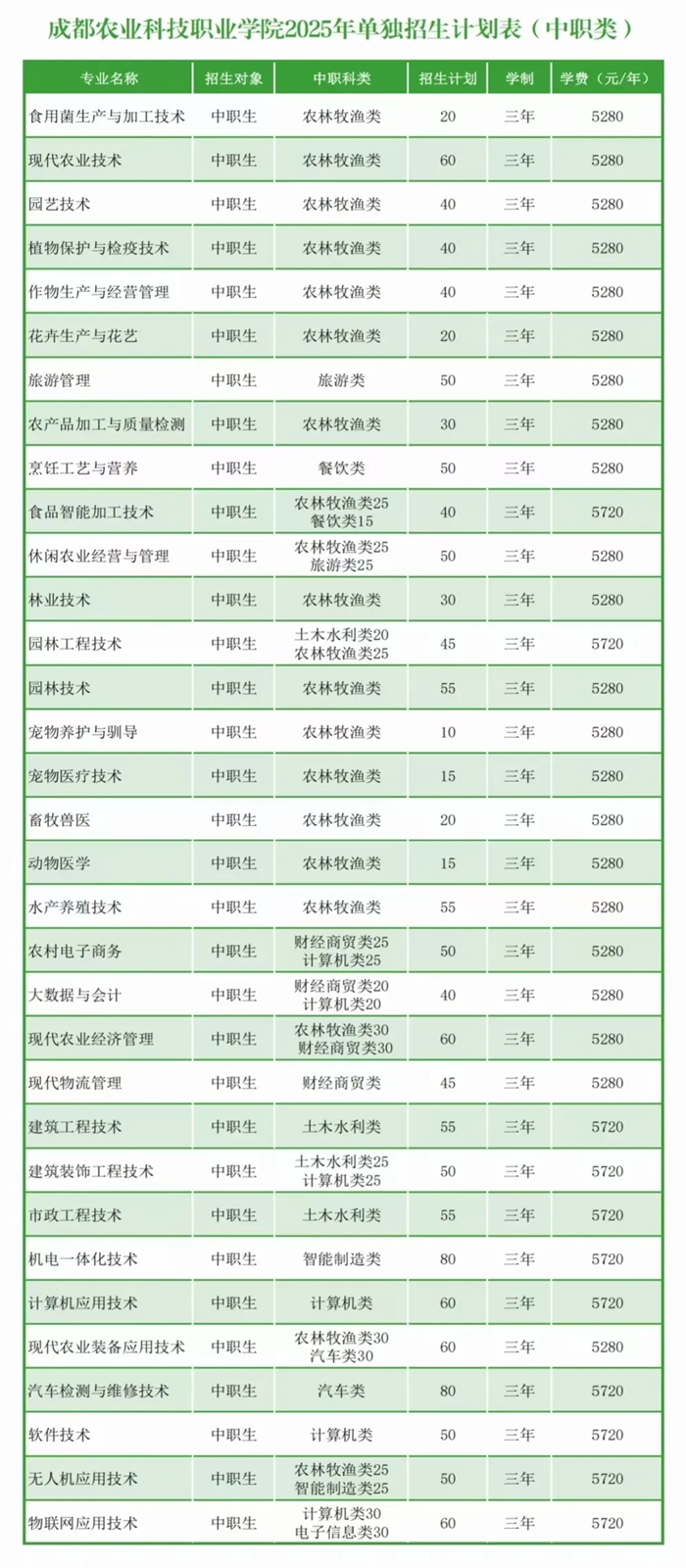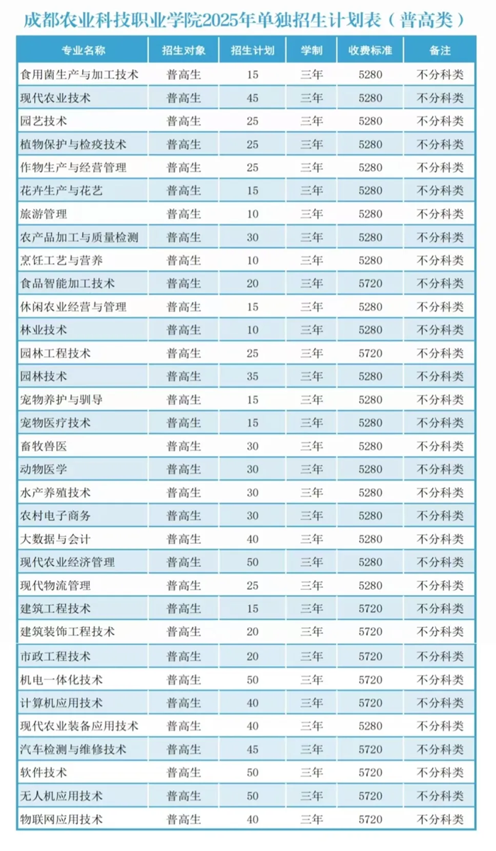 成都農(nóng)業(yè)科技職業(yè)學(xué)院2025年單獨(dú)招生簡(jiǎn)章,招生專業(yè)及計(jì)劃,24年單招調(diào)檔線多少