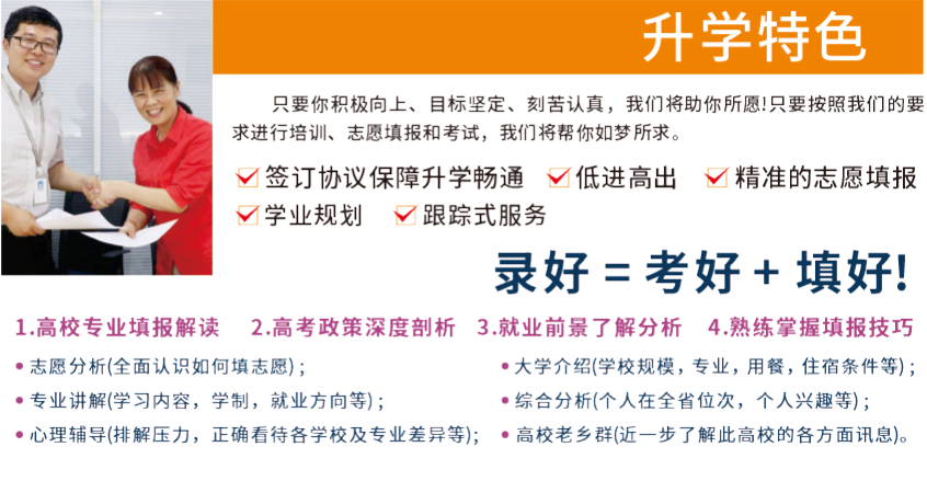 一直以來我們秉承著“誠信教育”、“良心教育”、“一切以成績說話”的辦學宗旨。學校積累多年教學經(jīng)驗,創(chuàng)造性的研發(fā)單招教學模式和綜合素質(zhì)測評技巧,站在學生和家長的立場,幫助更多學生實現(xiàn)大學夢。