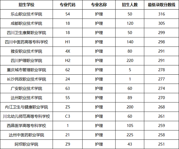 2025年護(hù)理專業(yè)單招各公辦院校錄取分?jǐn)?shù)線: