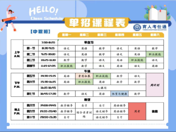 四川考仕通單招培訓(xùn)學(xué)?!捌崭哳悺焙汀爸新氼悺闭n表有嗎,是不是分班教學(xué)的