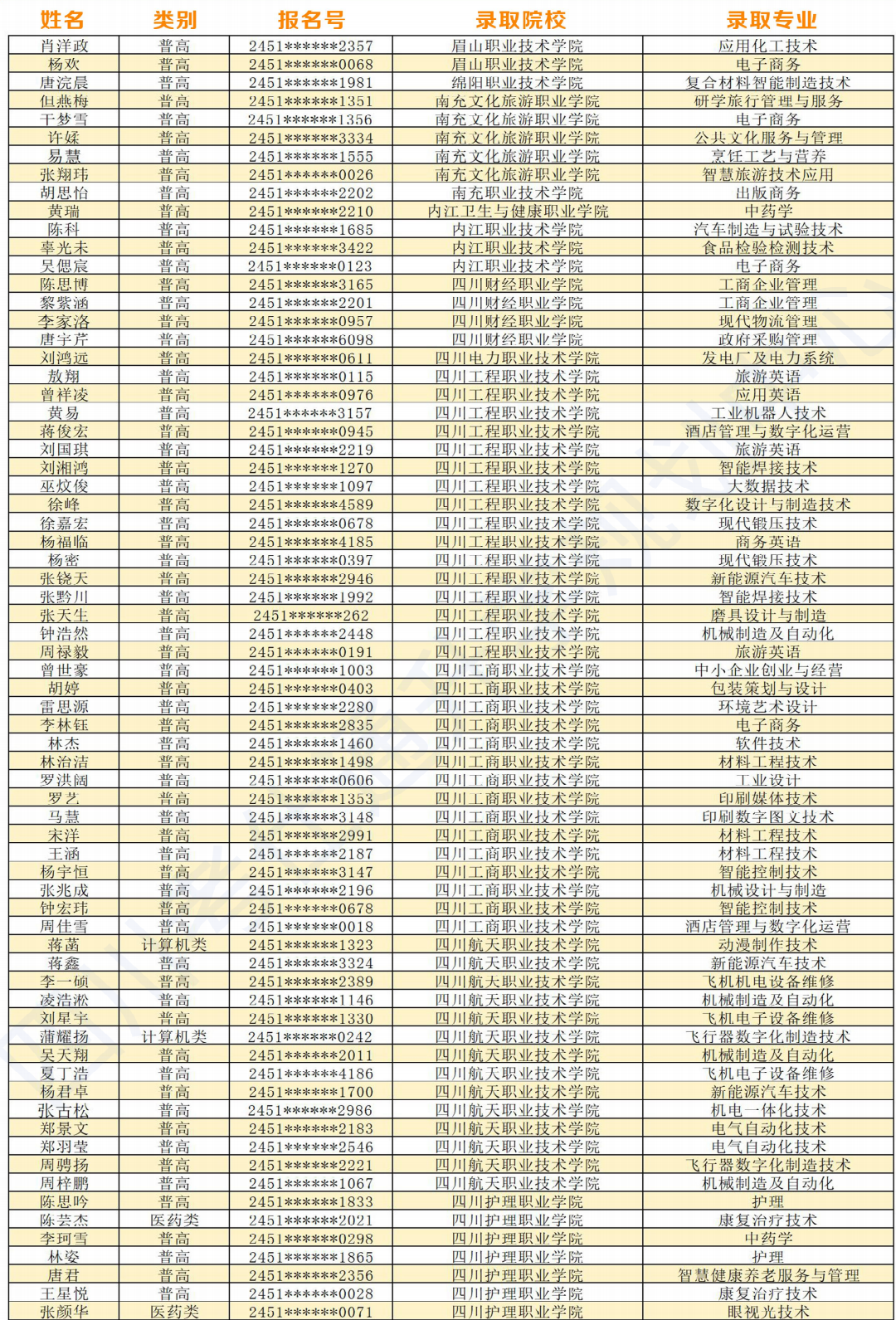 考仕通2024年單招錄取名單(部分)